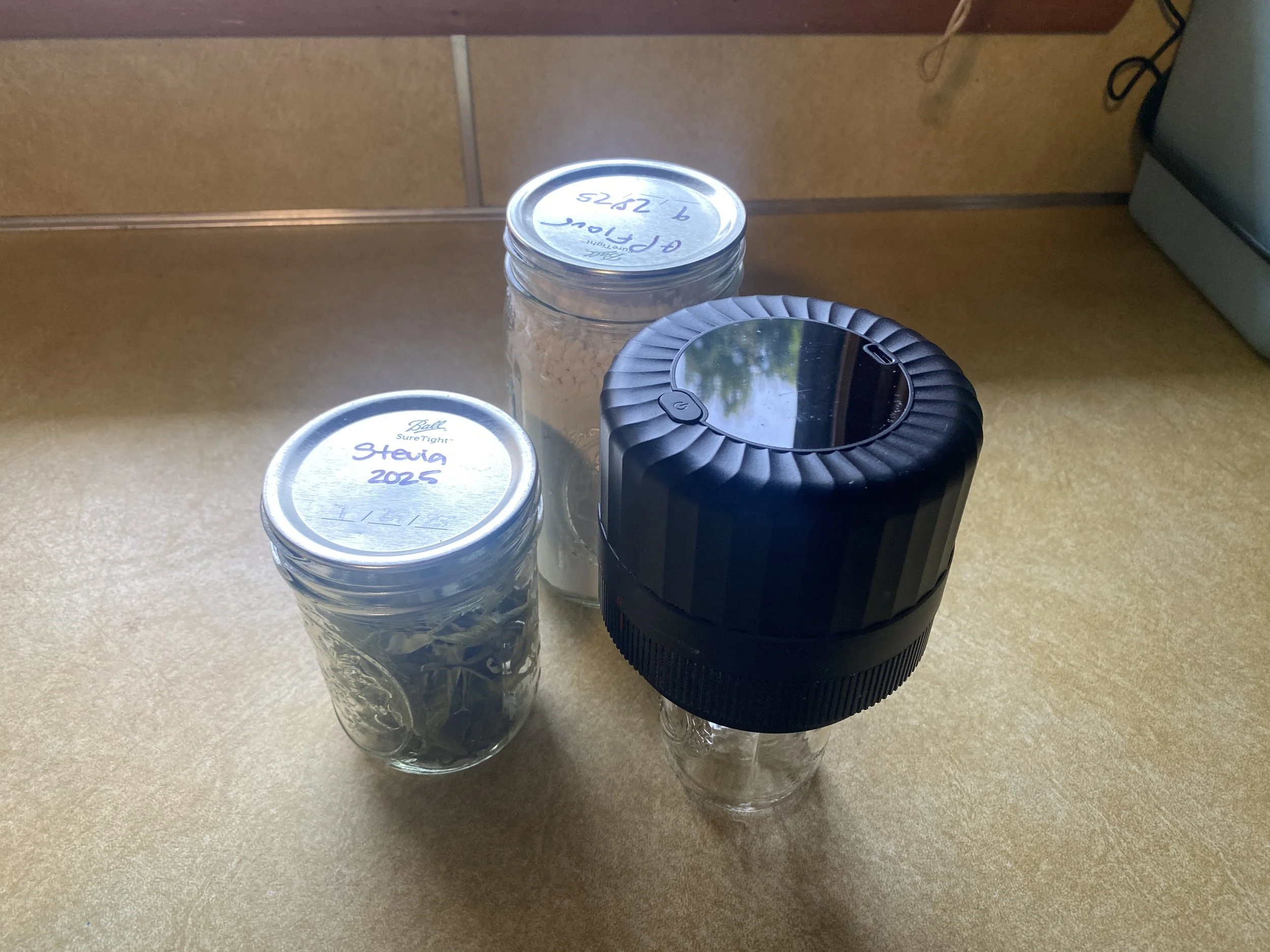 If you plan to store any dry ingredients in mason jars, an electric mason jar vacuum sealer is an essential. When we have an abundance of homegrown flowers and herbs or we buy a large amount of a dry ingredient, like flour, we opt to store them in glass mason jars for the best quality. The vacuum sealer ensures the items preserve longer and keep their freshness. We didn’t realize how much of a game changer this was for our dried goods until we tried it.
